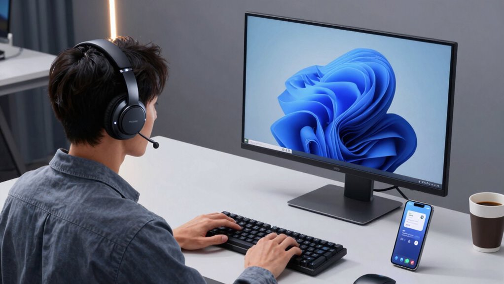 Selecting a wireless office headset that seamlessly connects to your devices requires paying close attention to compatibility factors. First, verify the headset supports the Bluetooth version your devices use, like V5.2 or V5.3, for smooth connectivity. Check if it’s compatible with your operating system—Windows, macOS, Linux, Android, or iOS—to ensure full functionality. It’s also important to see if the headset offers multiple connection modes, such as Bluetooth, USB dongle, or wired options, to cover different device types. For devices without built-in Bluetooth, confirm if adapters or dongles are included. Finally, consider whether the headset can connect to multiple devices simultaneously, which is helpful for switching between work tools without hassle. Compatibility ultimately determines how well your headset integrates into your workflow.